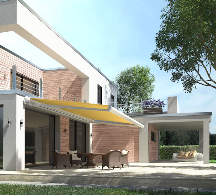 Bei einer Kassettenmarkise ist – wie der Name bereits sagt – ebenfalls wieder eine „Kassette“ im Spiel. Der Markisen Unterschied zur Halbkassettenmarkise liegt hier darin, dass nicht nur das Tuch sondern auch das komplette Gestell im eingefahrenen Zustand in der Kassette verschwindet. Die strapazierfähige Kassette ist der bestmögliche Schutz für Ihre Markise und garantiert Ihnen eine hohe Langlebigkeit des Sonnenschutzes. Außerdem ermöglicht diese Technik einen schnellen und unkomplizierten Tuchwechsel, wodurch Sie die Optik Ihrer Markise bei Bedarf einfach ändern lassen können. Obwohl in der Kassette Tuch und Technik Platz finden müssen, ist die Form trotzdem filigran gebaut und schmeichelt Ihrer Fassade. Ebenso wie bei den anderen Markisenarten, können Sie für Gestell und Kassette aus über 650 Farben wählen. Auch die Tuchauswahl bleibt mit über 210 Stoffen gleich. Dass dies die kostenintensivste der Markise Arten ist, ist klar. Abgesehen davon ist bei der Kassettenmarkise der komplette Sonnenschutz am besten vor Wettereinflüssen geschützt.