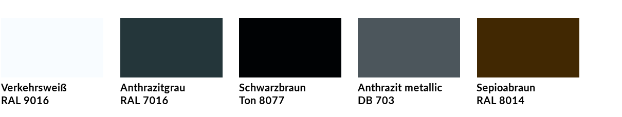 Für Kassette und Rahmen Ihrer Insektenschutztür haben Sie ohne Mehrpreis die Wahl aus einer der Wohnfühlfarben. Andere Farben sind für Ihren Fliegenschutz ebenso als Option erhältlich.